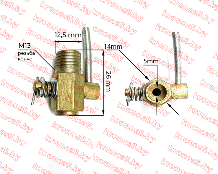 Общая длина крана с резьбой — 26 мм.